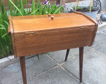 Vintage Retro Mid Century Morco Sewing Box Craft Box Needlecraft Teak Side Table Selency